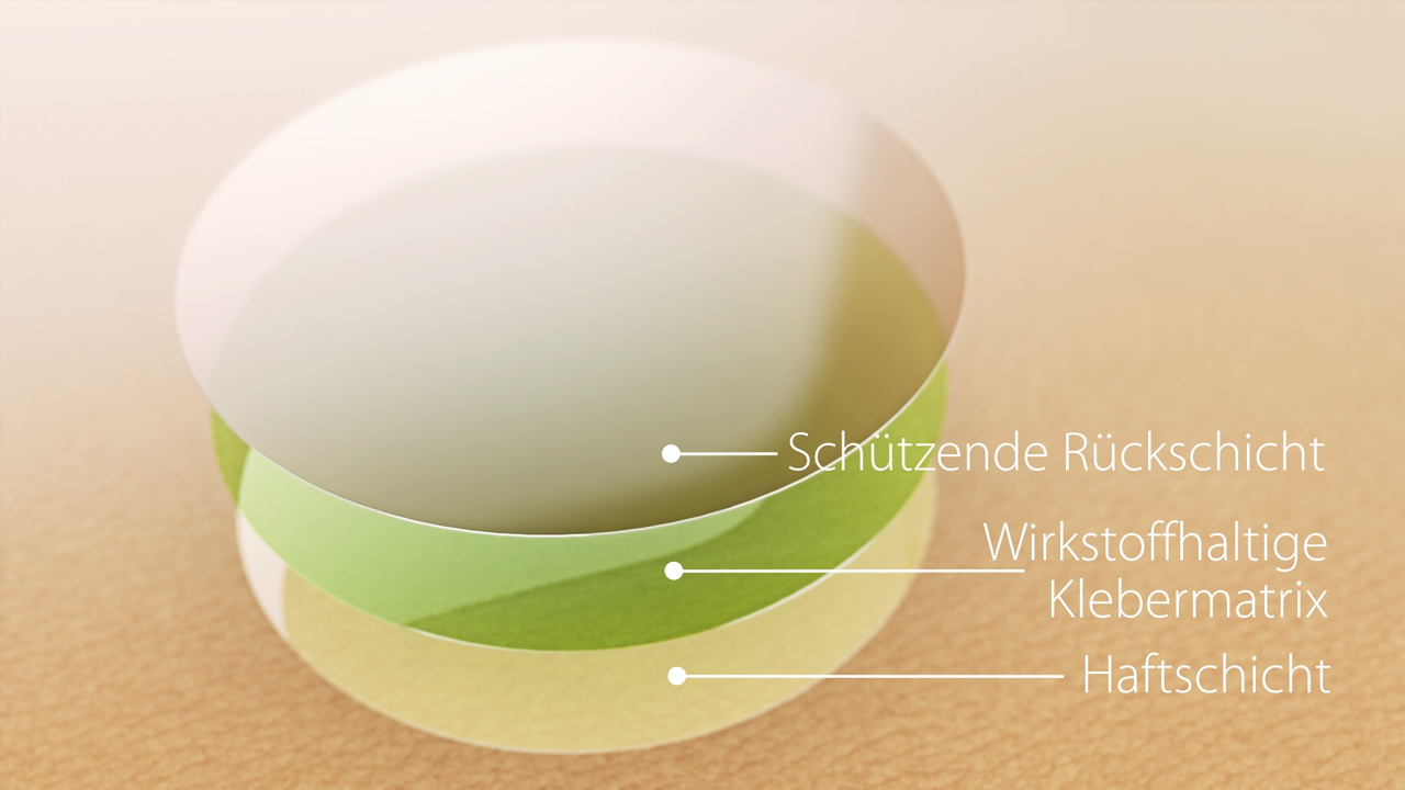 Fotorealistische 3D Produktvisualisierungen ermöglichen Ansichten, die in Wirklichkeit gar nicht existieren, wie z.B. die Darstellung der einzelnen Schichten dieses Wirkstoffpflasters. Solche 3D-Darstellungen sind vielseitig auch aus anderen Perspektiven einsetzbar und lassen sich problemlos verändern, ohne dass erneut die Kosten für ein Fotoshooting entstehen.